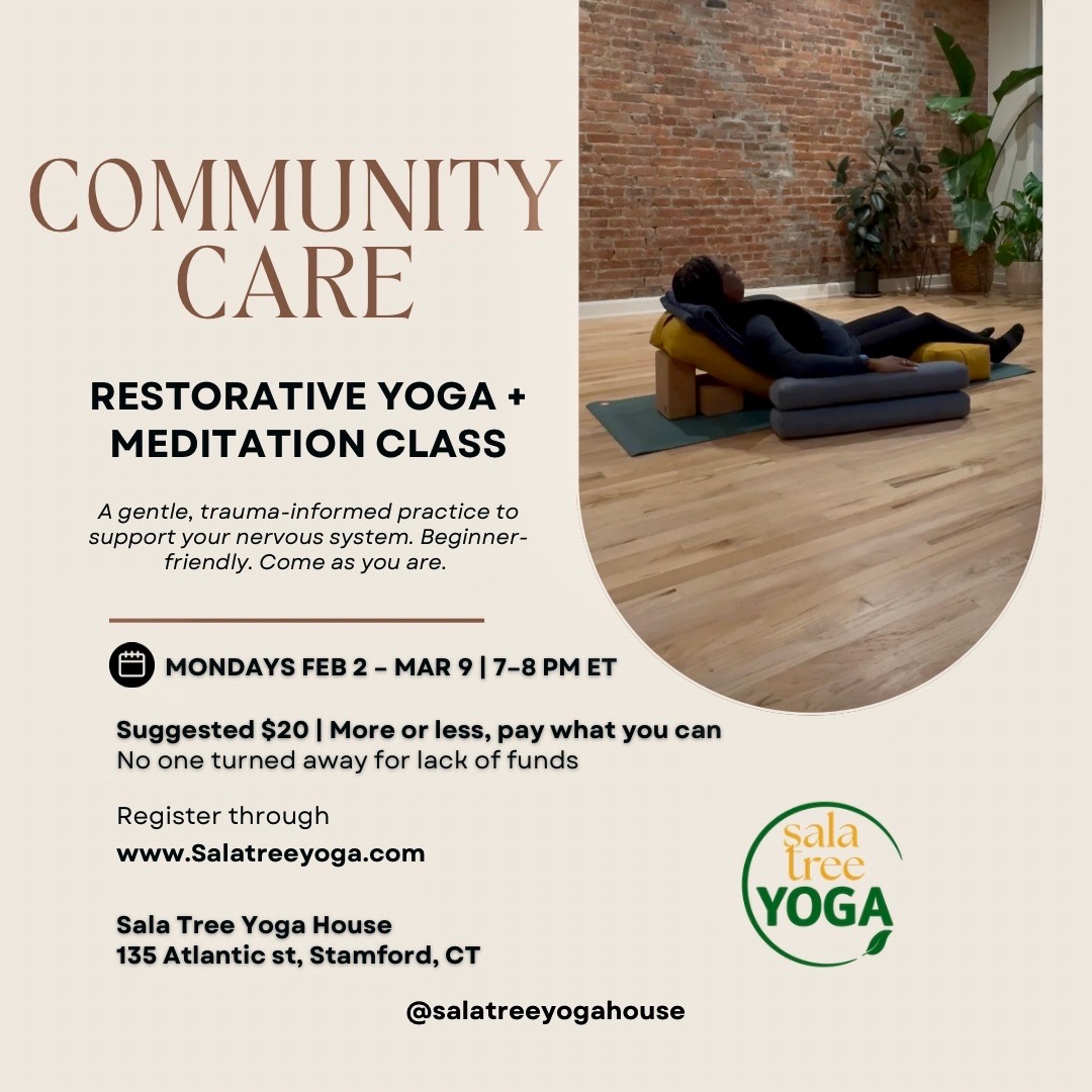 Community Care Restorative Yoga + Meditation is a slow, supportive class for anyone who needs a soft place to land.